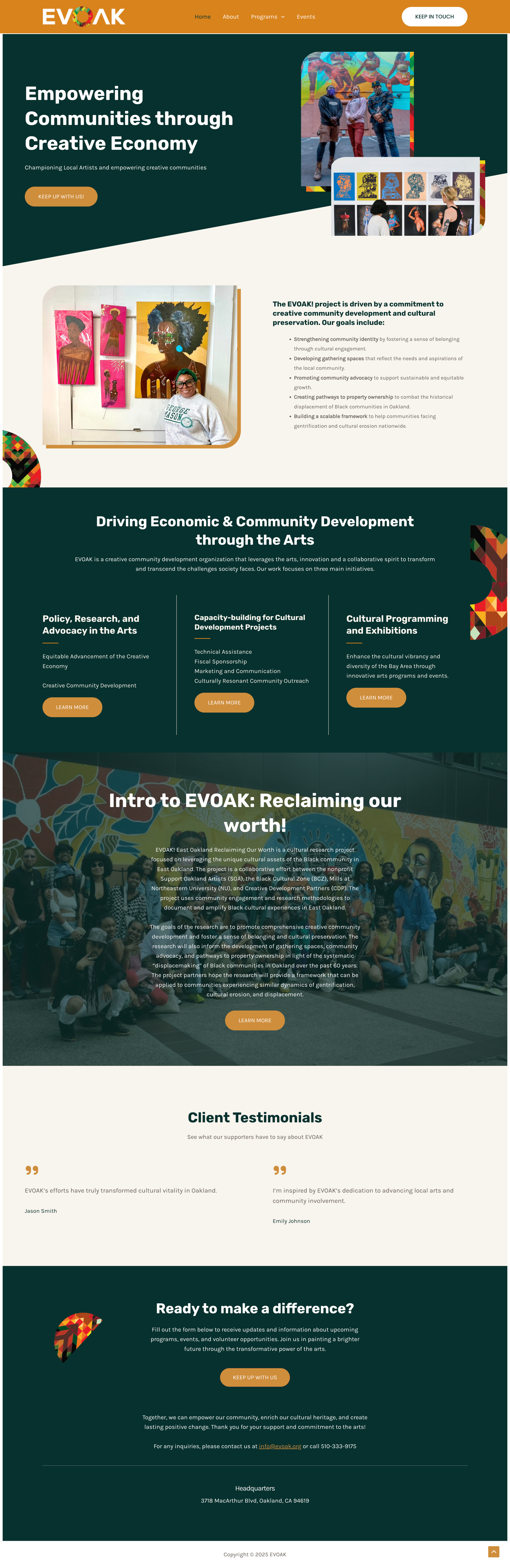 EVOAK is a creative community development organization that leverages the arts, innovation and a collaborative spirit to transform and transcend the challenges society faces. Our work focuses on three main initiatives.
